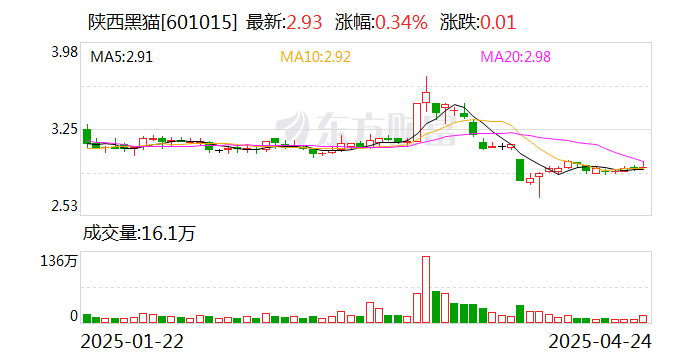 4月24日,陕西黑猫(601015)公布2025年一季报,公司营业收入为25.8亿元,同比下降37.3%;归母净利润自去年同期亏损2.12亿元变为亏损2.62亿元,亏损额进一步扩大;扣非归母净利润自去年同期亏损2.38亿元变为亏损3.06亿元,亏损额进一步扩大;经营现金流净额为3.01亿元,同比增长147.6%;EPS(全面摊薄)为-0.1281元。