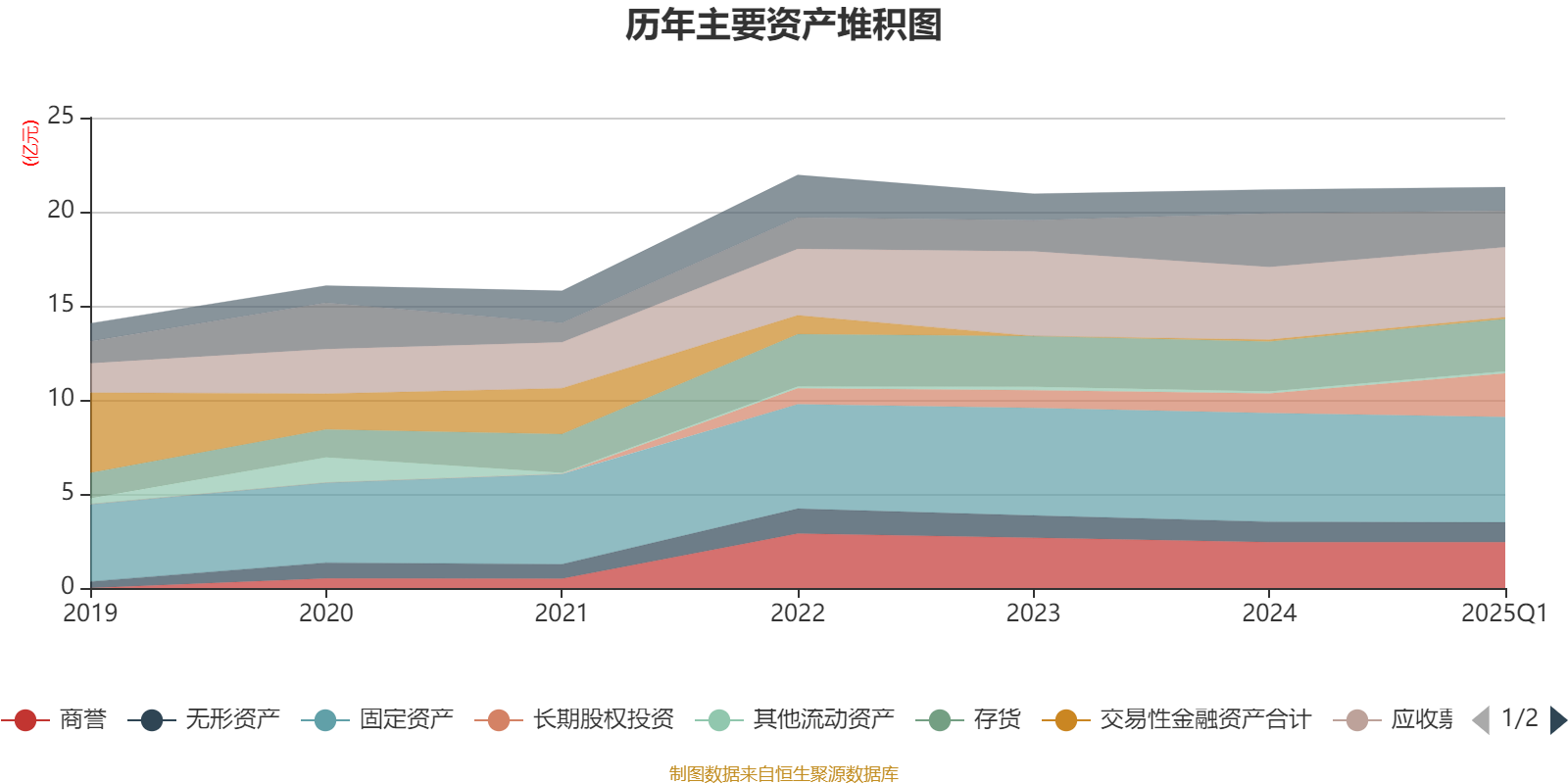 资产重大变化方面,截至2025年一季度末,公司长期股权投资较上年末增加121.87%,占公司总资产比重上升5.96个百分点;货币资金较上年末减少32.17%,占公司总资产比重下降4.38个百分点;固定资产较上年末减少2.97%,占公司总资产比重下降0.96个百分点;应收票据及应收账款较上年末减少3.59%,占公司总资产比重下降0.76个百分点。