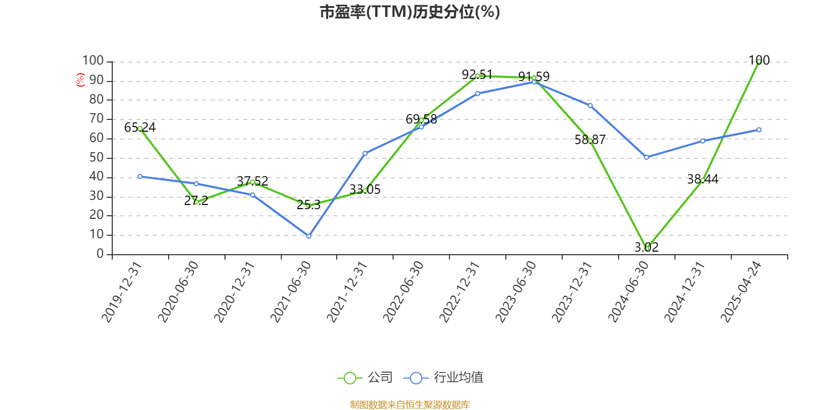市盈率、市净率为负时,不显示当期分位数,会导致折线图中断。