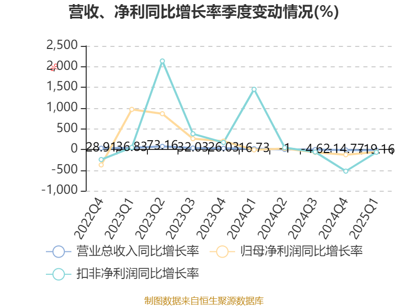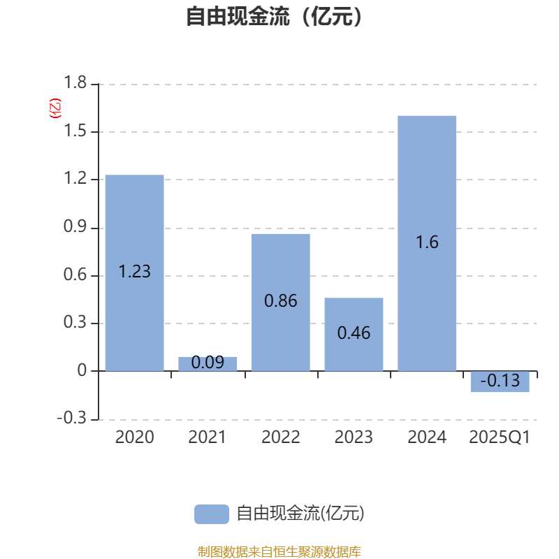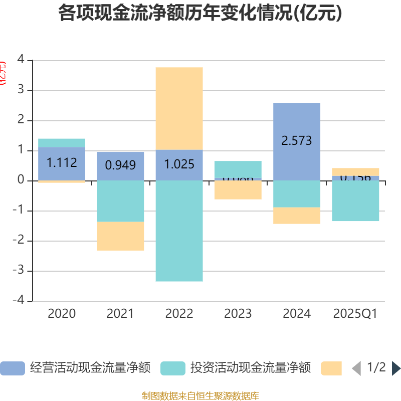 截至2025年一季度末,公司经营活动现金流净额为1558.09万元,同比下降83.99%;筹资活动现金流净额2549.61万元,同比增加2199.45万元;投资活动现金流净额-1.35亿元,上年同期为-1768.42万元。