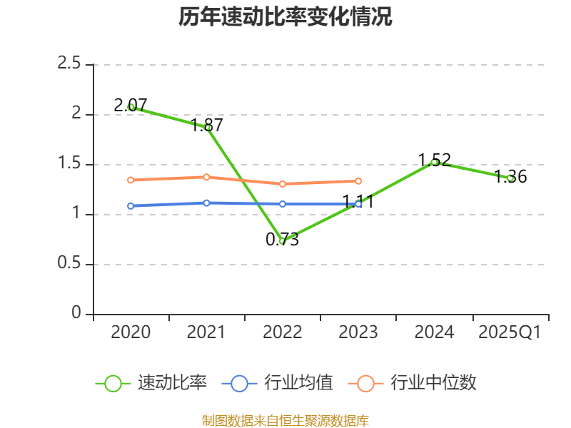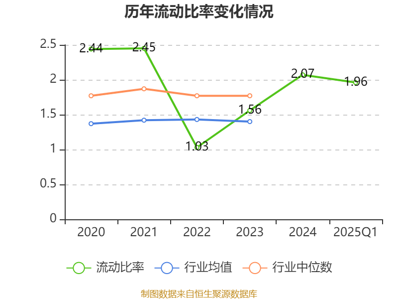 2025年第一季度,公司流动比率为1.96,速动比率为1.36。