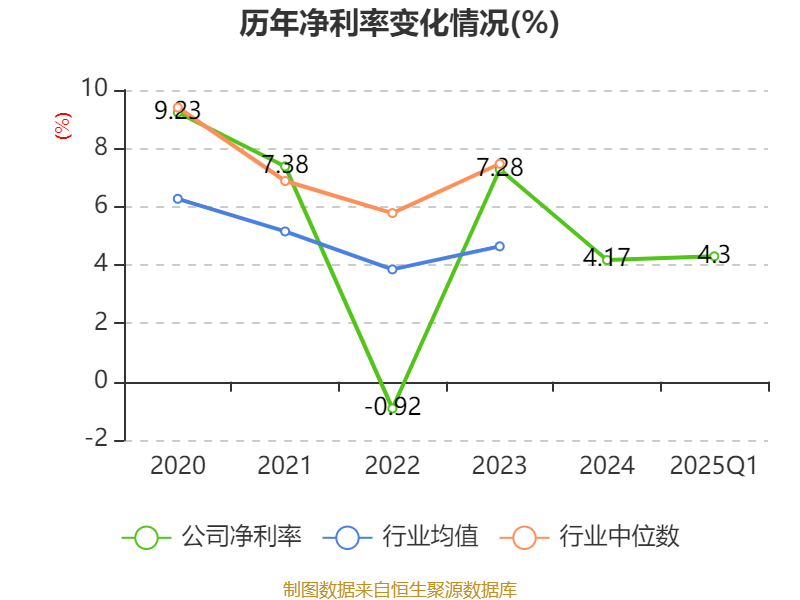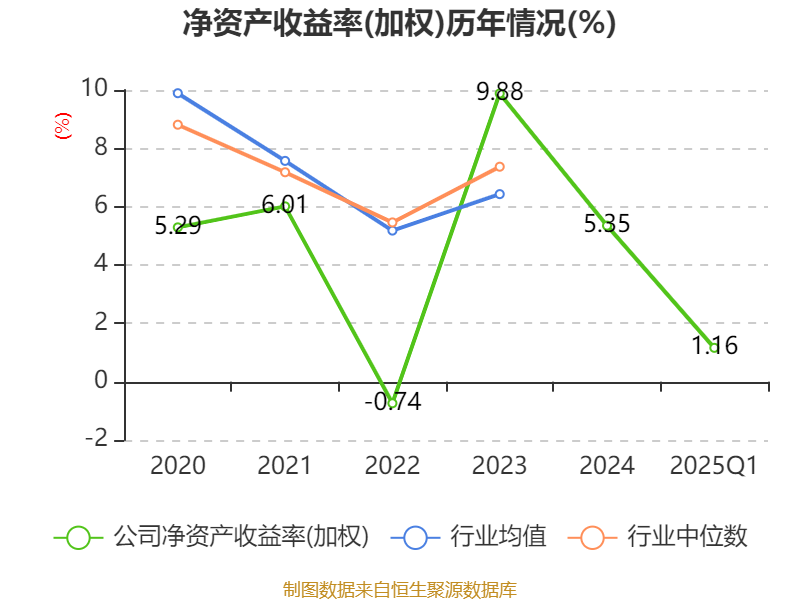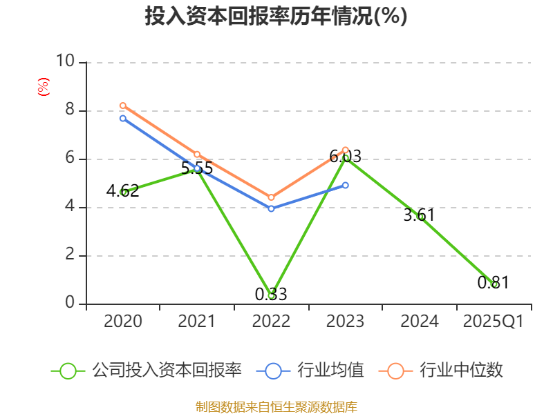 盈利能力方面, 2025年一季度公司加权平均净资产收益率为1.16%,同比下降1.88个百分点。公司2025年第一季度投入资本回报率为0.81%,较上年同期下降1.39个百分点。