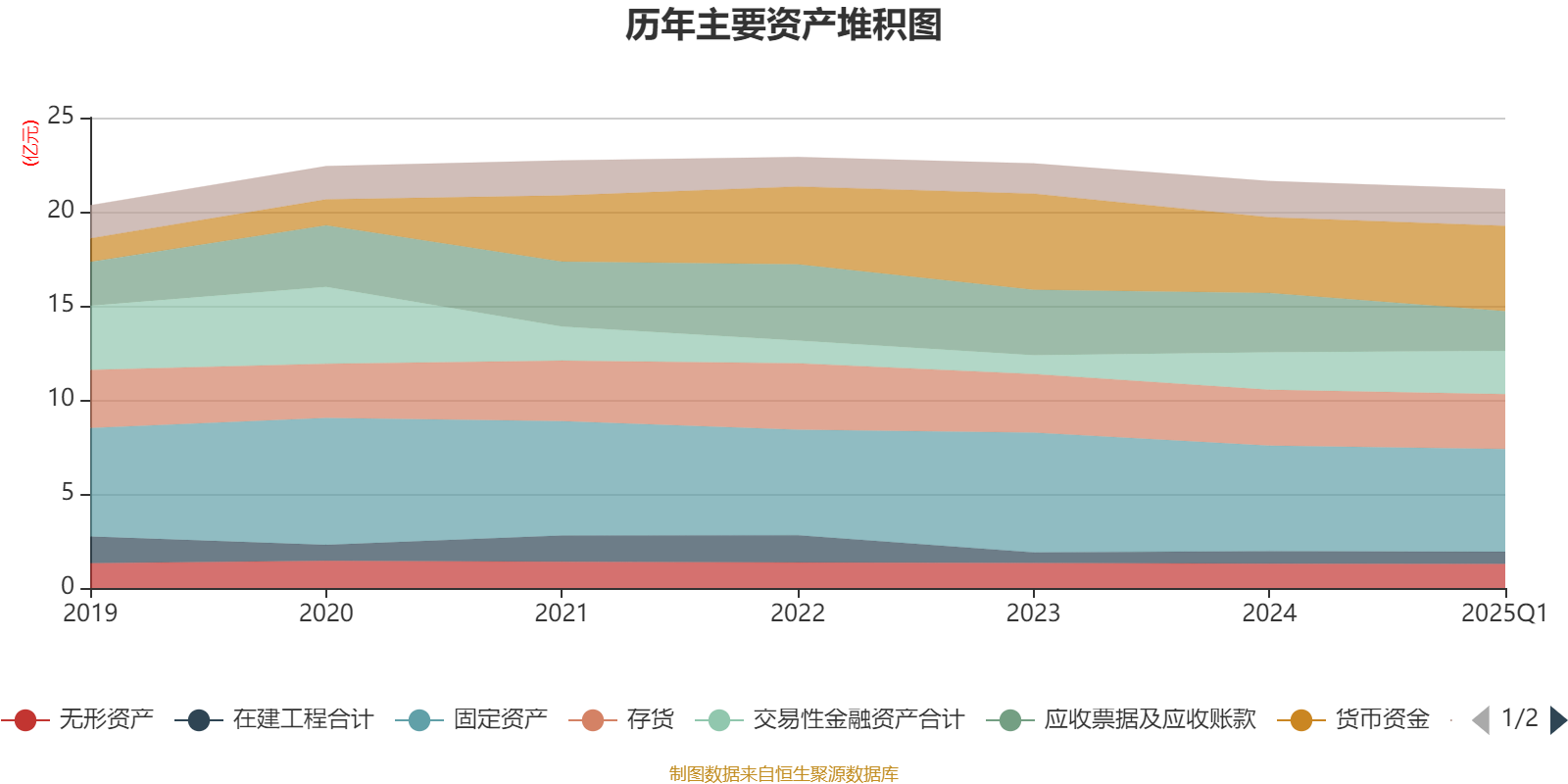 资产重大变化方面,截至2025年一季度末,公司应收票据及应收账款较上年末减少32.94%,占公司总资产比重下降4.6个百分点;货币资金较上年末增加12.78%,占公司总资产比重上升2.8个百分点;交易性金融资产合计较上年末增加14.97%,占公司总资产比重上升1.6个百分点;应收款项融资较上年末增加47.75%,占公司总资产比重上升0.95个百分点。