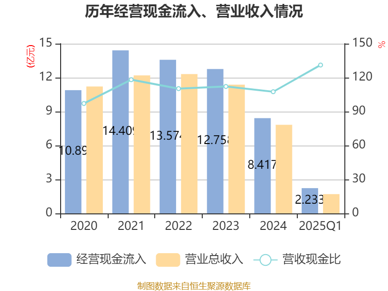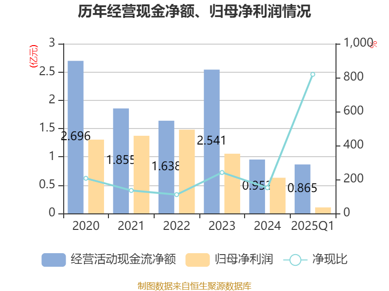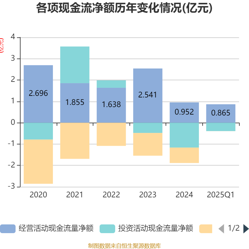 截至2025年一季度末,公司经营活动现金流净额为8645.57万元,同比增长2238.51%;筹资活动现金流净额-38.42万元,同比减少38.42万元;投资活动现金流净额-3916.77万元,上年同期为4312.19万元。