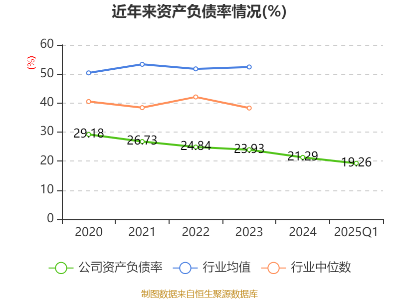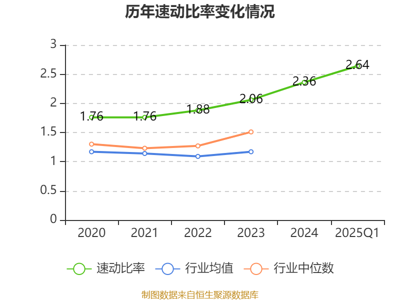 2025年第一季度,公司流动比率为3.43,速动比率为2.64。