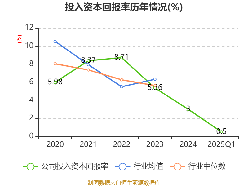 盈利能力方面, 2025年一季度公司加权平均净资产收益率为0.73%,同比下降0.22个百分点。公司2025年第一季度投入资本回报率为0.5%,较上年同期下降0.11个百分点。