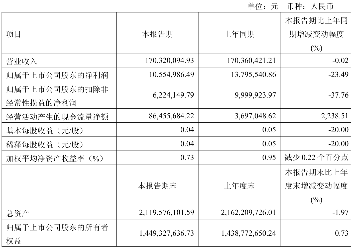 中证智能财讯联明股份(603006)4月25日披露2025年第一季度报告。公司实现营业总收入1.7亿元,同比下降0.02%;归母净利润1055.5万元,同比下降23.49%;扣非净利润622.41万元,同比下降37.76%;经营活动产生的现金流量净额为8645.57万元,同比增长2238.51%;报告期内,联明股份基本每股收益为0.04元,加权平均净资产收益率为0.73%。