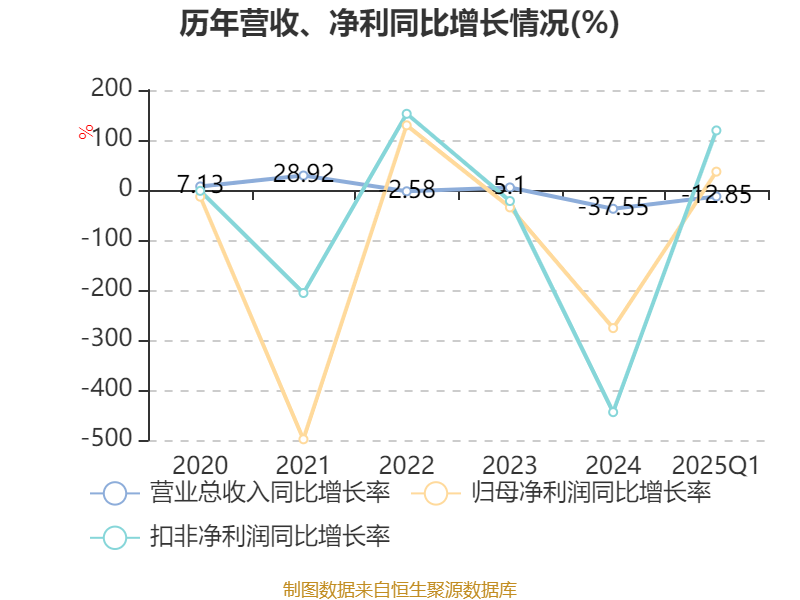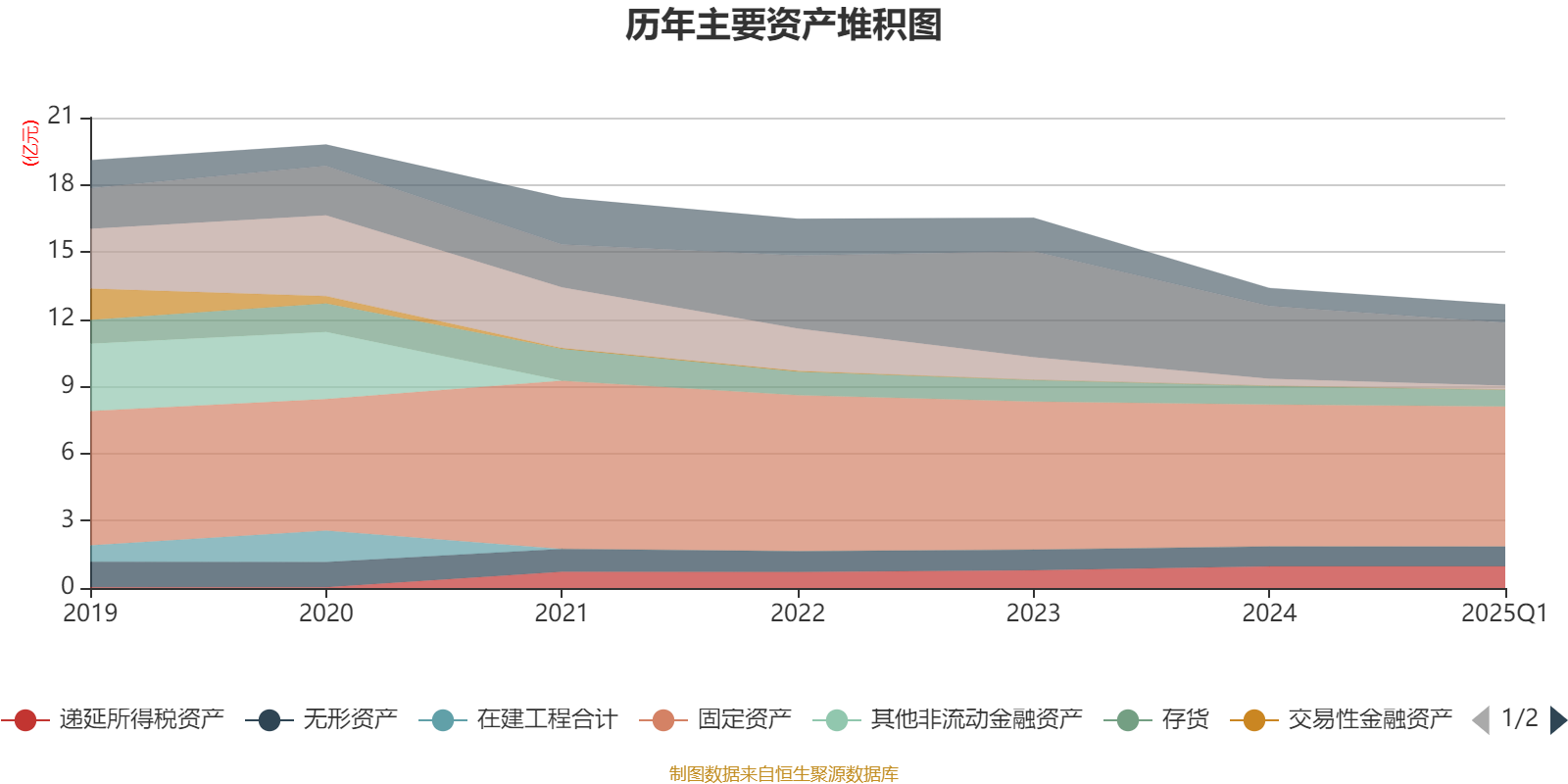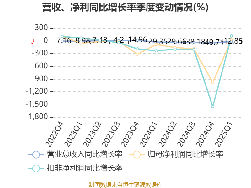 资产重大变化方面,截至2025年一季度末,公司固定资产较上年末减少1.11%,占公司总资产比重上升2.17个百分点;货币资金较上年末减少13.46%,占公司总资产比重下降2.06个百分点;应收票据及应收账款较上年末减少42.82%,占公司总资产比重下降0.94个百分点;递延所得税资产较上年末增加0.01%,占公司总资产比重上升0.42个百分点。