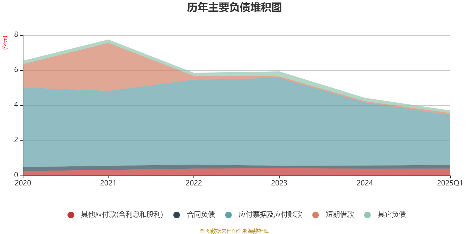 负债重大变化方面,截至2025年一季度末,公司应付票据及应付账款较上年末减少21.02%,占公司总资产比重下降4.44个百分点;短期借款较上年末增加83.35%,占公司总资产比重上升0.42个百分点;合同负债较上年末增加18.72%,占公司总资产比重上升0.34个百分点;应交税费较上年末减少41.85%,占公司总资产比重下降0.2个百分点。