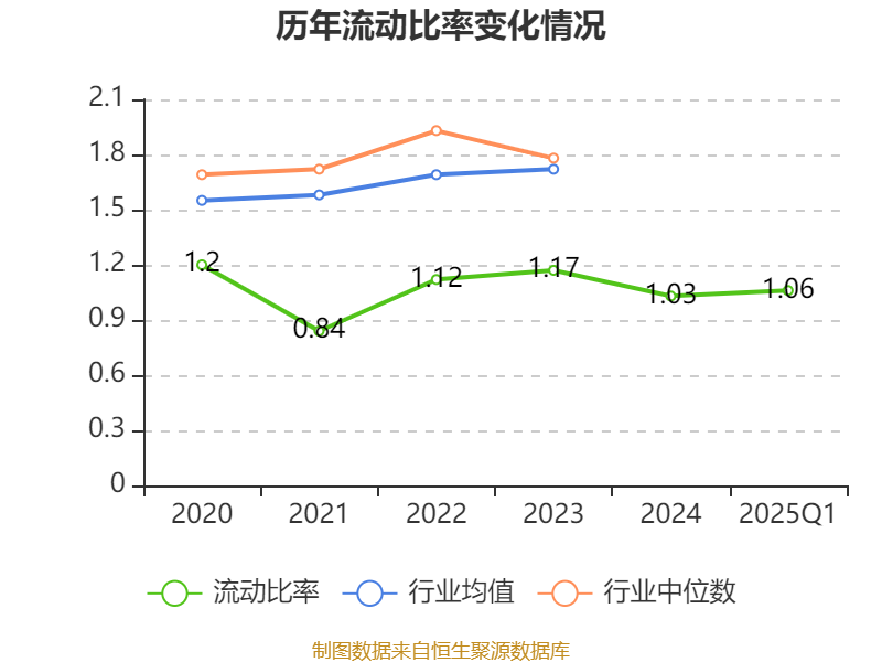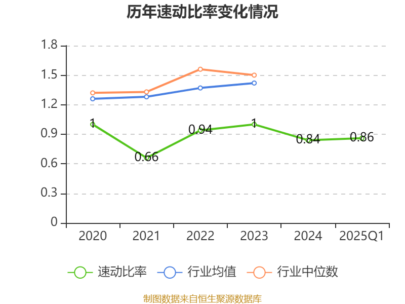 2025年第一季度,公司流动比率为1.06,速动比率为0.86。