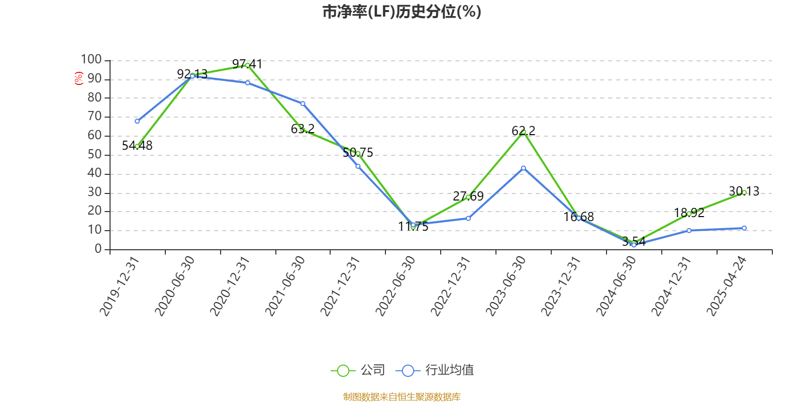 市盈率、市净率为负时,不显示当期分位数,会导致折线图中断。