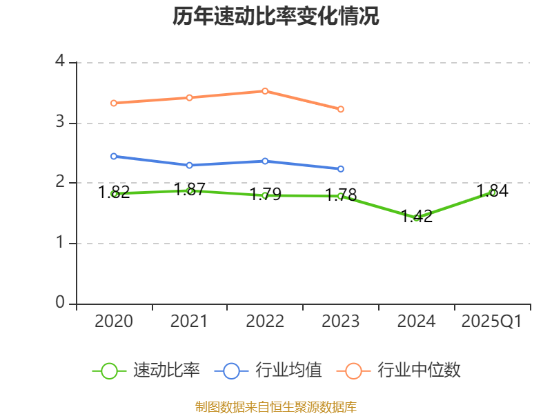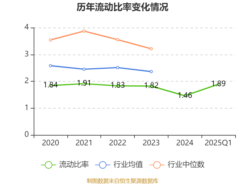 2025年第一季度,公司流动比率为1.89,速动比率为1.84。
