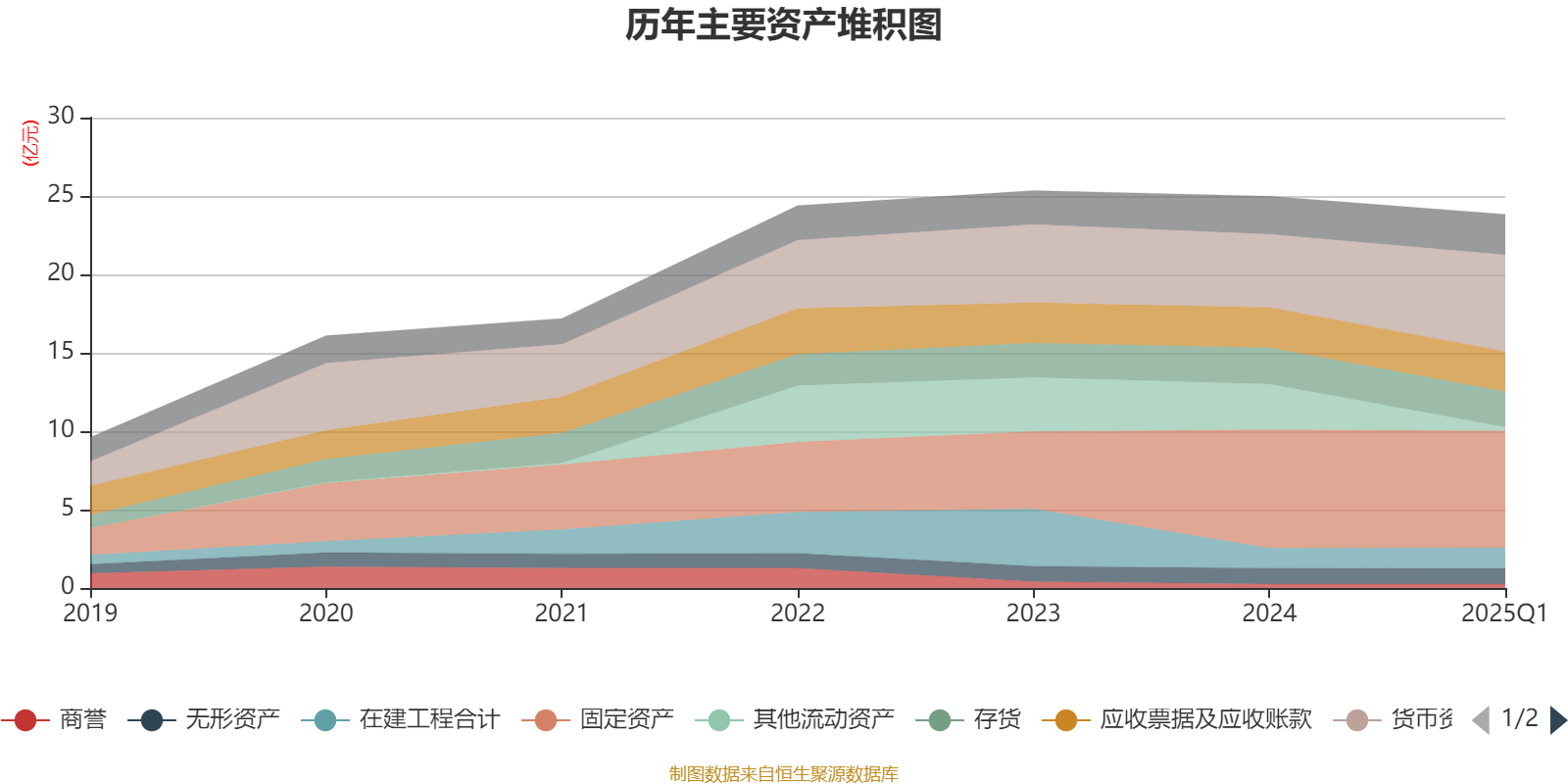 资产重大变化方面,截至2025年一季度末,公司其他流动资产较上年末减少92.35%,占公司总资产比重下降10.66个百分点;货币资金较上年末增加32.35%,占公司总资产比重上升7.24个百分点;固定资产较上年末减少1.13%,占公司总资产比重上升1.12个百分点;交易性金融资产合计占公司总资产的0.55%,上年末为0。
