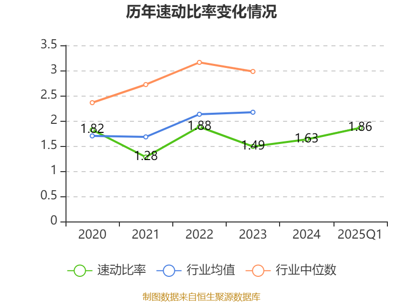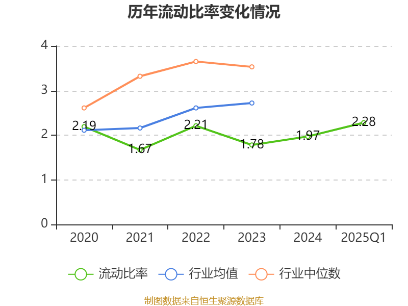 2025年第一季度,公司流动比率为2.28,速动比率为1.86。