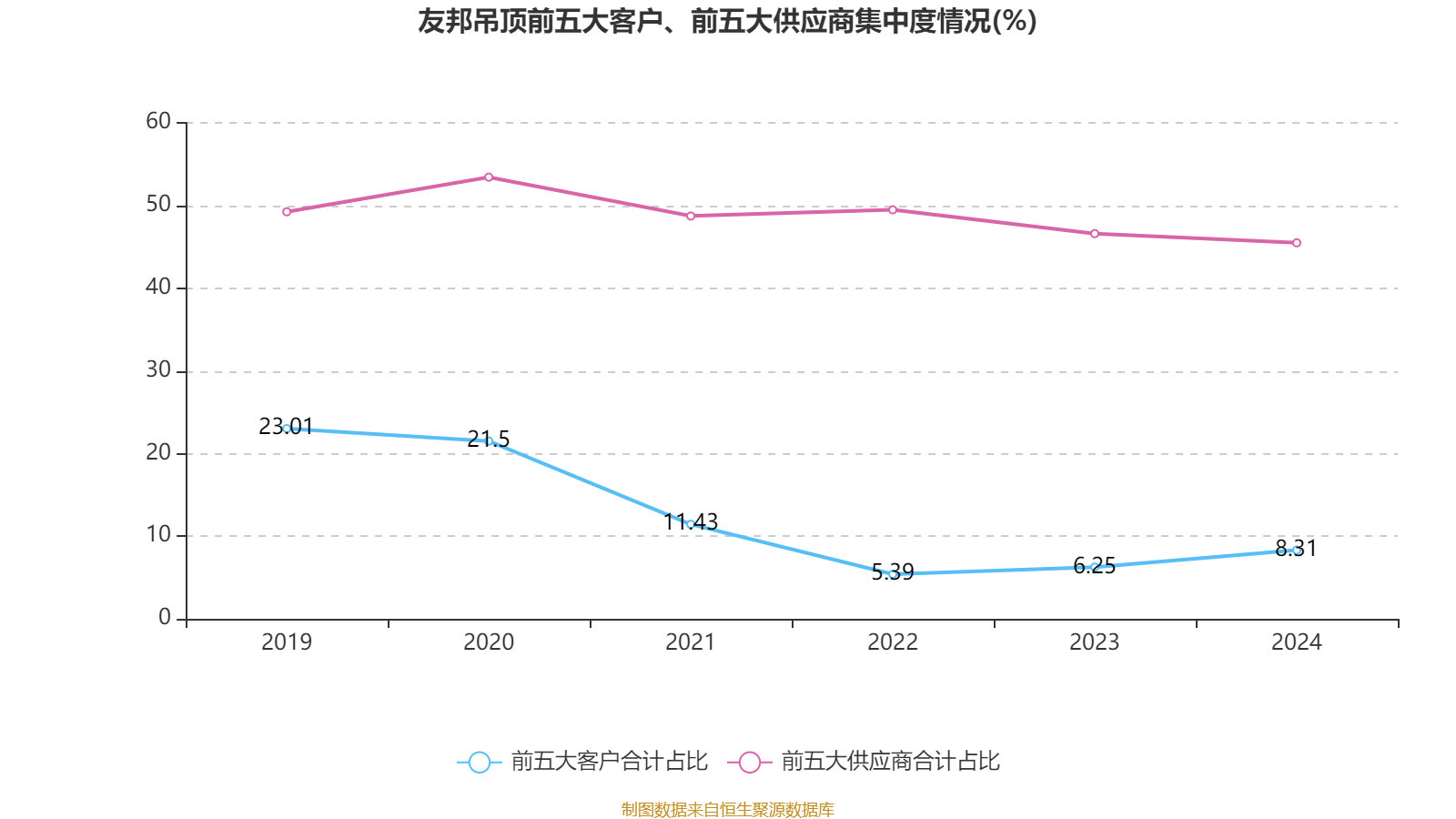 值得注意的是,中登公司数据显示,截至2025年4月18日,友邦吊顶13.69%股份处于质押状态。年报显示,第二大股东骆莲琴质押1800万股公司股份,占其全部持股的46.08%。
