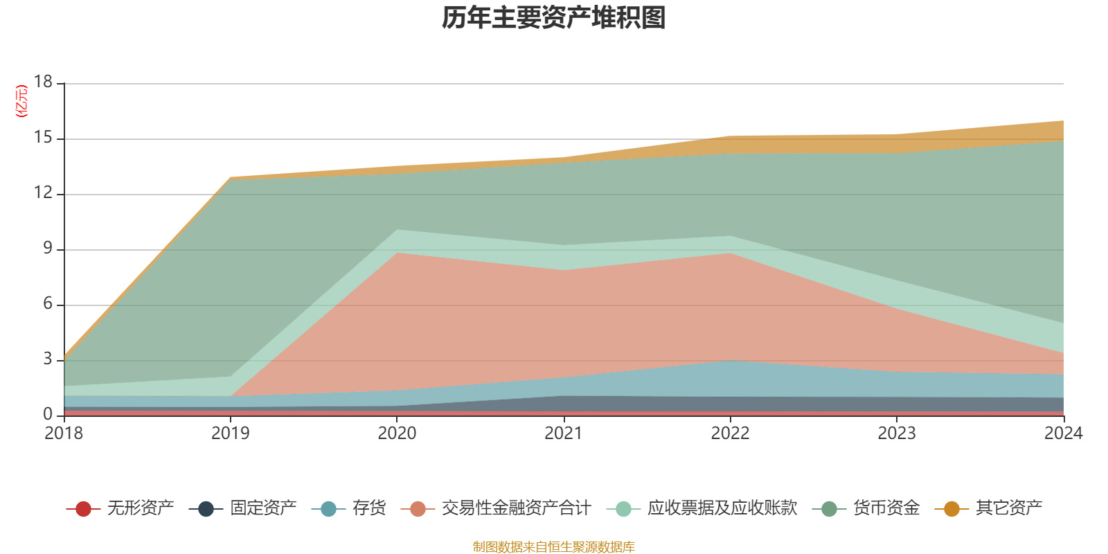 资产重大变化方面,截至2024年末,公司货币资金较上年末增加43.1%,占公司总资产比重上升16.48个百分点;交易性金融资产合计较上年末减少66.18%,占公司总资产比重下降15.16个百分点;在建工程合计较上年末增加37.33%,占公司总资产比重上升1.13个百分点;存货较上年末减少7.06%,占公司总资产比重下降1.02个百分点。