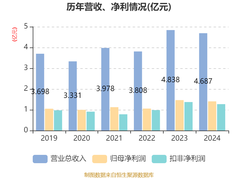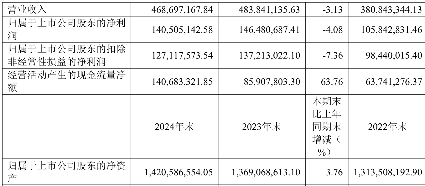 中证智能财讯祥生医疗(688358)4月25日披露2024年年度报告。2024年,公司实现营业总收入4.69亿元,同比下降3.13%;归母净利润1.41亿元,同比下降4.08%;扣非净利润1.27亿元,同比下降7.36%;经营活动产生的现金流量净额为1.41亿元,同比增长63.76%;报告期内,祥生医疗基本每股收益为1.26元,加权平均净资产收益率为10.13%。公司2024年度分配预案为:拟向全体股东每10股派现10元(含税)。