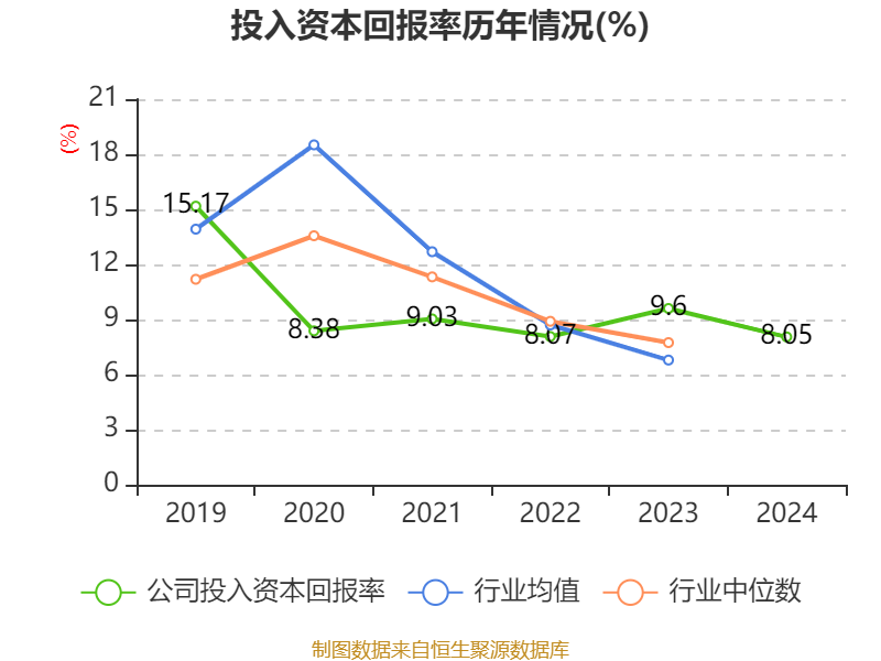 数据显示,2024年公司加权平均净资产收益率为10.13%,较上年同期下降0.82个百分点。公司2024年投入资本回报率为8.05%,较上年同期下降1.55个百分点。