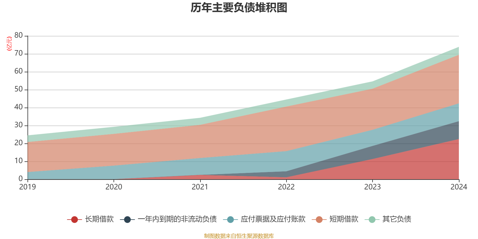 负债重大变化方面,截至2024年末,公司长期借款较上年末增加98.77%,占公司总资产比重上升6.75个百分点;一年内到期的非流动负债较上年末增加36.02%,占公司总资产比重上升0.99个百分点;应付票据及应付账款较上年末增加10.6%,占公司总资产比重下降0.47个百分点;其他应付款(含利息和股利)较上年末增加156.62%,占公司总资产比重上升0.24个百分点。