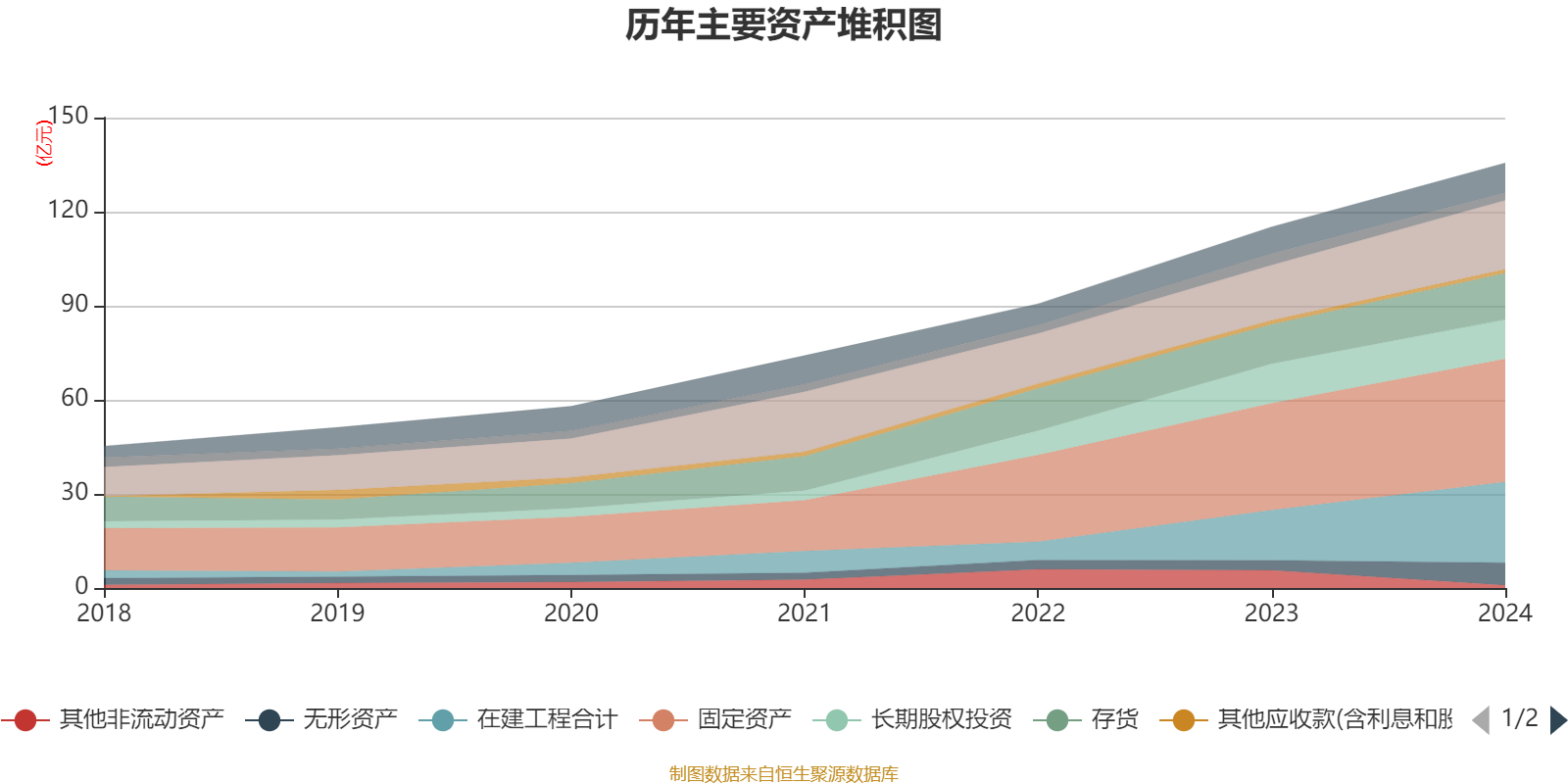 资产重大变化方面,截至2024年末,公司在建工程合计较上年末增加61.42%,占公司总资产比重上升5.17个百分点;其他非流动资产较上年末减少84.92%,占公司总资产比重下降4.28个百分点;无形资产较上年末增加124.78%,占公司总资产比重上升2.52个百分点;长期股权投资较上年末减少0.94%,占公司总资产比重下降1.73个百分点。