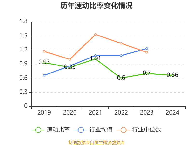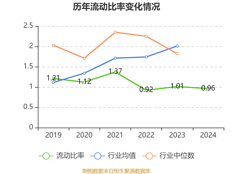 2024年,公司流动比率为0.96,速动比率为0.66。