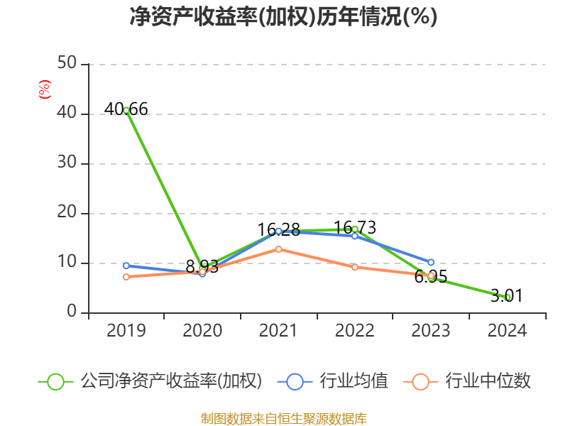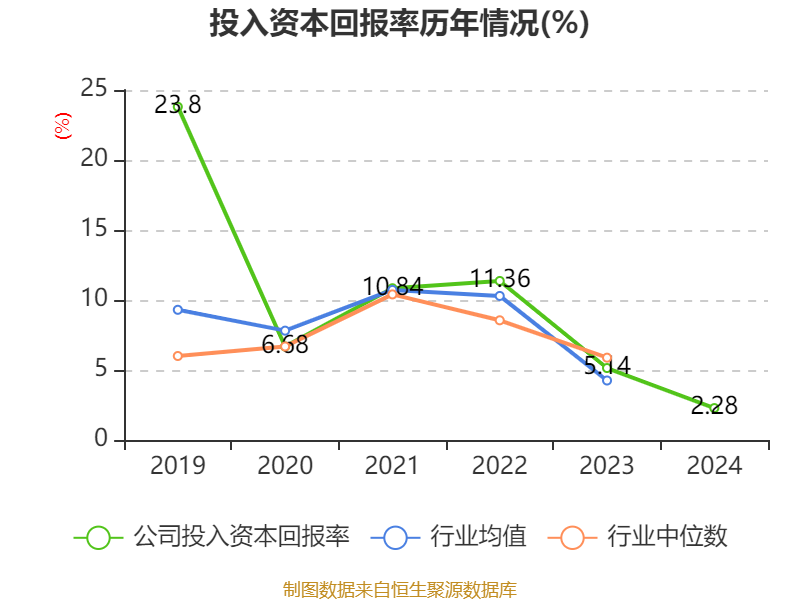 数据显示,2024年公司加权平均净资产收益率为3.01%,较上年同期下降3.94个百分点。公司2024年投入资本回报率为2.28%,较上年同期下降2.86个百分点。