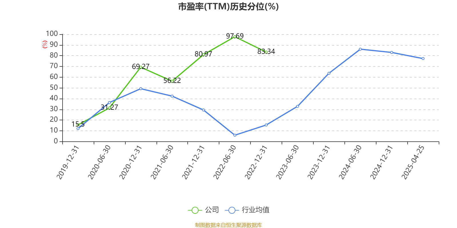 市盈率、市净率为负时,不显示当期分位数,会导致折线图中断。