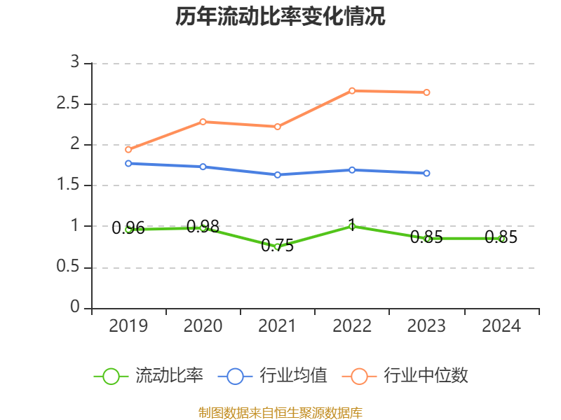 2024年,公司流动比率为0.85,速动比率为0.44。