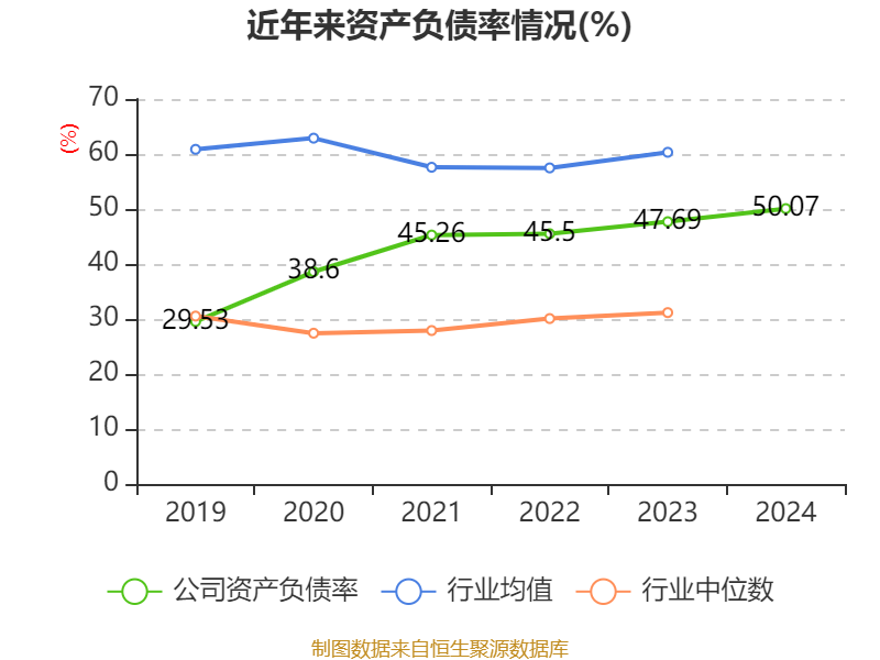 负债重大变化方面,截至2024年末,公司长期借款较上年末减少39.14%,占公司总资产比重下降4.5个百分点;一年内到期的非流动负债较上年末增加49.66%,占公司总资产比重上升3.1个百分点;应付票据及应付账款较上年末增加47.57%,占公司总资产比重上升2.2个百分点;短期借款较上年末增加11.3%,占公司总资产比重上升1.6个百分点。