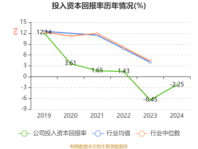 数据显示,2024年公司加权平均净资产收益率为-6.75%,较上年同期上升5.54个百分点。公司2024年投入资本回报率为-2.25%,较上年同期上升4.2个百分点。