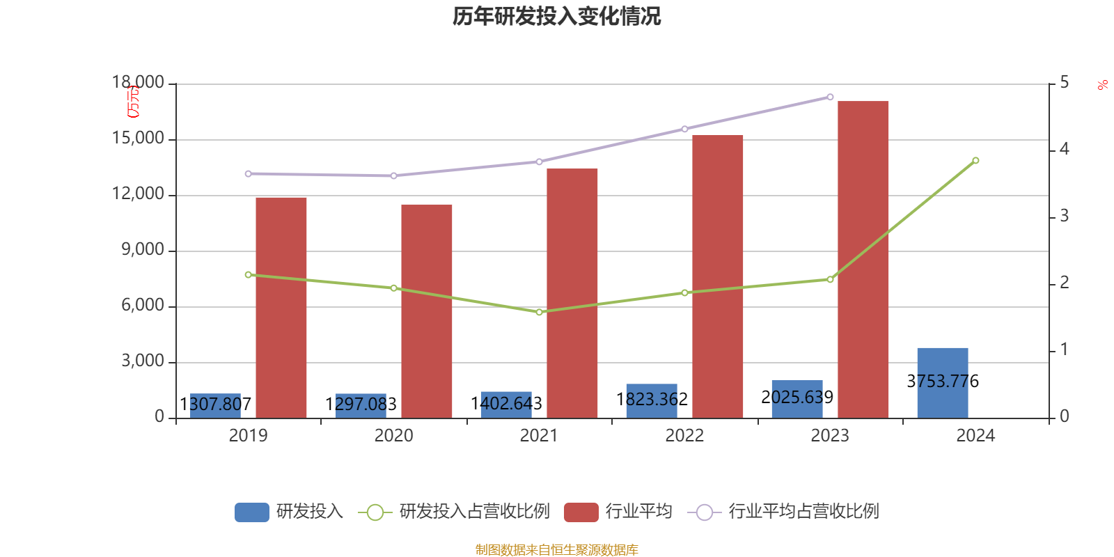2024年全年,公司研发投入金额为3753.78万元,同比增长85.31%;研发投入占营业收入比例为3.85%,相比上年同期上升1.78个百分点。此外,公司全年研发投入资本化率为0%。