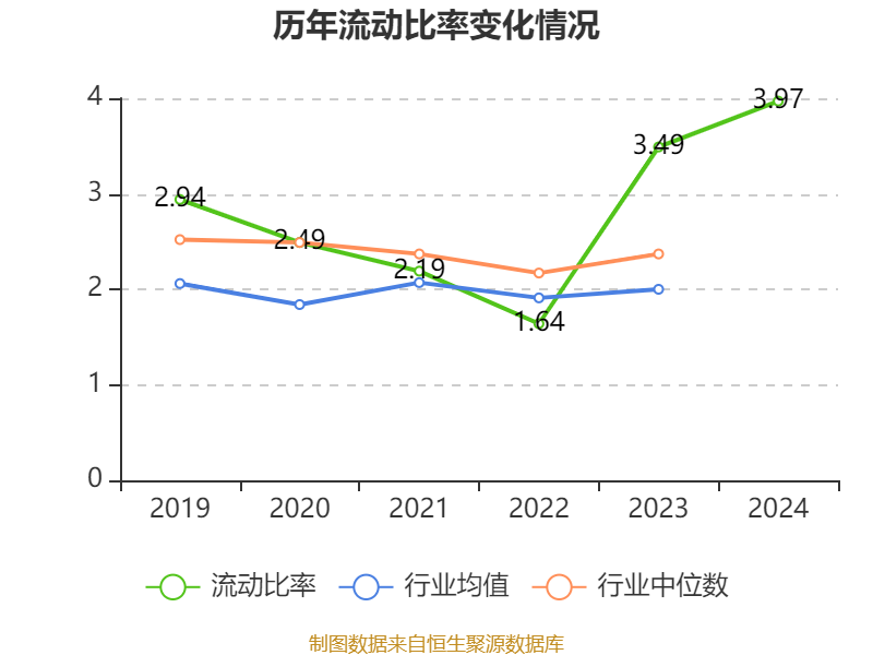 2024年,公司流动比率为3.97,速动比率为3.76。