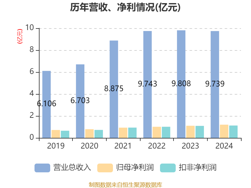 中证智能财讯盘龙药业(002864)4月25日披露2024年年度报告。2024年,公司实现营业总收入9.74亿元,同比下降0.71%;归母净利润1.20亿元,同比增长8.91%;扣非净利润1.13亿元,同比增长2.99%;经营活动产生的现金流量净额为1.57亿元,同比增长50.50%;报告期内,盘龙药业基本每股收益为1.15元,加权平均净资产收益率为7.56%。公司2024年度分配预案为:拟向全体股东每10股派现2.5元(含税)。