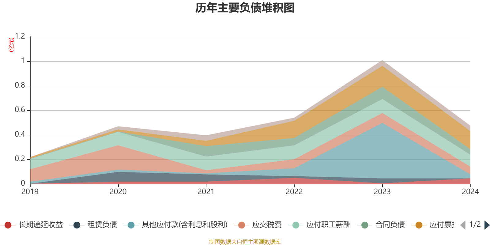负债重大变化方面,截至2024年末,公司其他应付款(含利息和股利)较上年末减少92.86%,占公司总资产比重下降4.32个百分点;长期递延收益较上年末增加1559.09%,占公司总资产比重上升0.54个百分点;合同负债较上年末减少54.51%,占公司总资产比重下降0.46个百分点;租赁负债较上年末减少100%,占公司总资产比重下降0.43个百分点。