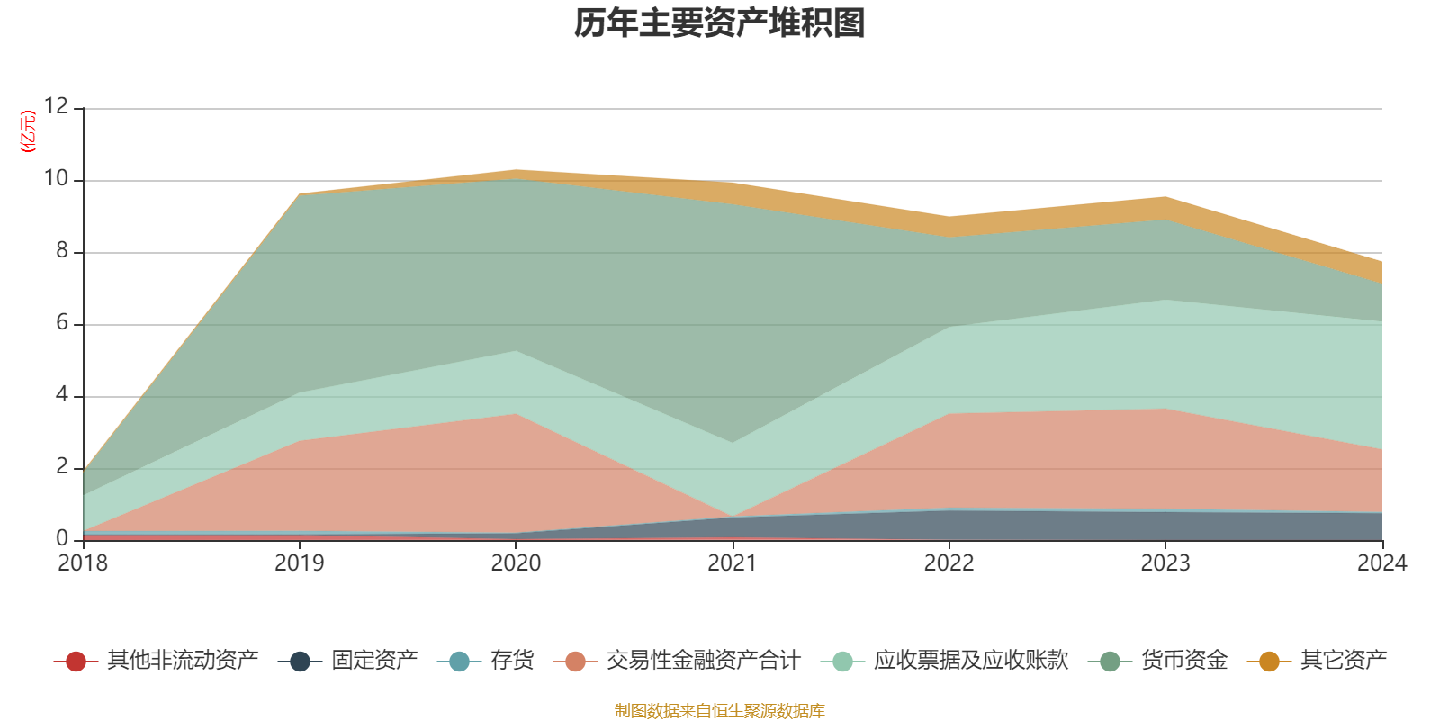 资产重大变化方面,截至2024年末,公司应收票据及应收账款较上年末增加17.61%,占公司总资产比重上升14.26个百分点;货币资金较上年末减少52.69%,占公司总资产比重下降9.71个百分点;交易性金融资产合计较上年末减少37.68%,占公司总资产比重下降6.77个百分点;固定资产较上年末减少3.89%,占公司总资产比重上升1.5个百分点。