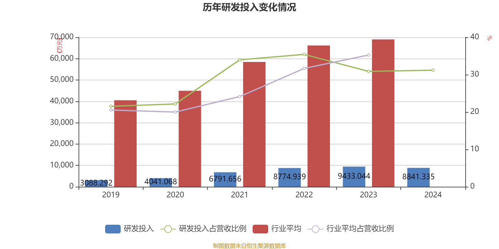 2024年全年,公司研发投入金额为8841.33万元,同比下降6.27%;研发投入占营业收入比例为31.2%,相比上年同期上升0.31个百分点。此外,公司全年研发投入资本化率为0。