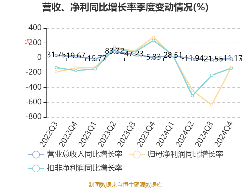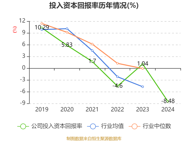 数据显示,2024年公司加权平均净资产收益率为-7.66%,较上年同期下降9.35个百分点。公司2024年投入资本回报率为-8.48%,较上年同期下降9.52个百分点。