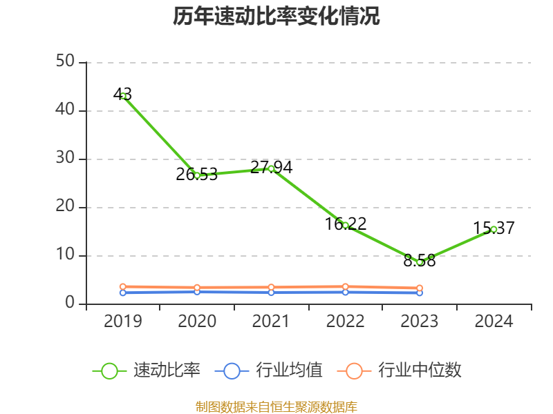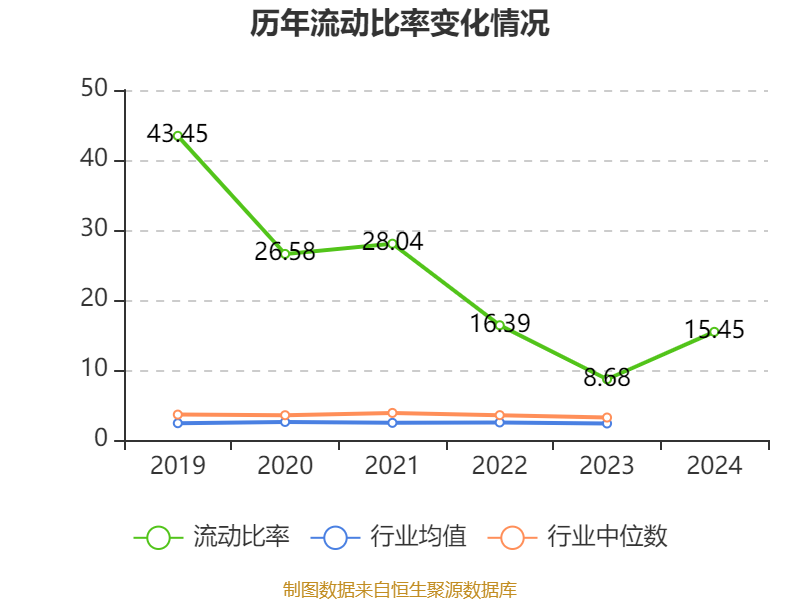 2024年,公司流动比率为15.45,速动比率为15.37。