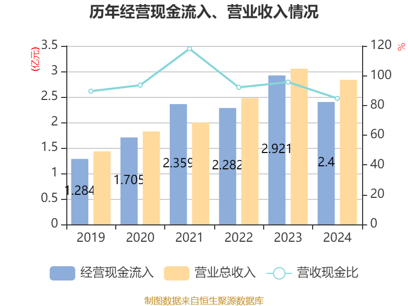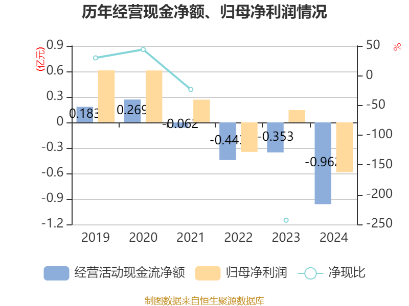 截至2024年,公司经营活动现金流净额为-9622.35万元,同比减少6094.65万元;筹资活动现金流净额-1.24亿元,同比减少1.52亿元;投资活动现金流净额1.04亿元,上年同期为-1869.89万元。