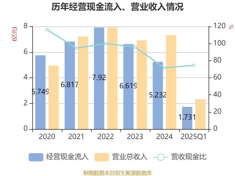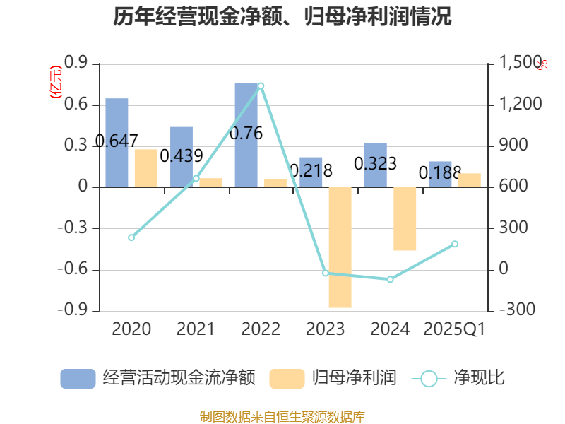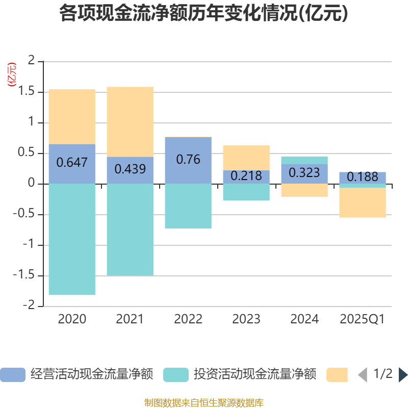 截至2025年一季度末,公司经营活动现金流净额为1881.96万元,同比增长270.01%;筹资活动现金流净额-4825.7万元,同比减少3884.71万元;投资活动现金流净额-722.7万元,上年同期为43.53万元。