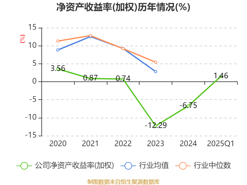 盈利能力方面, 2025年一季度公司加权平均净资产收益率为1.46%,同比上升3.42个百分点。公司2025年第一季度投入资本回报率为1.14%,较上年同期上升2.19个百分点。