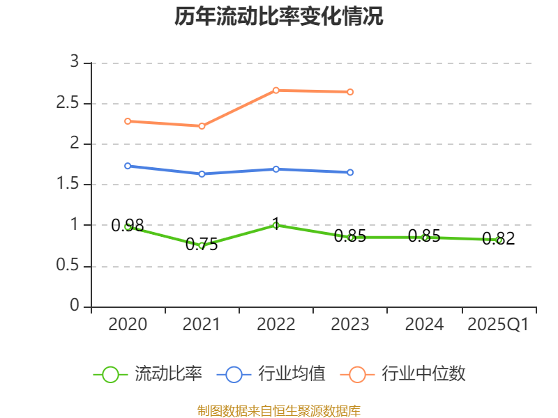 2025年第一季度,公司流动比率为0.82,速动比率为0.41。