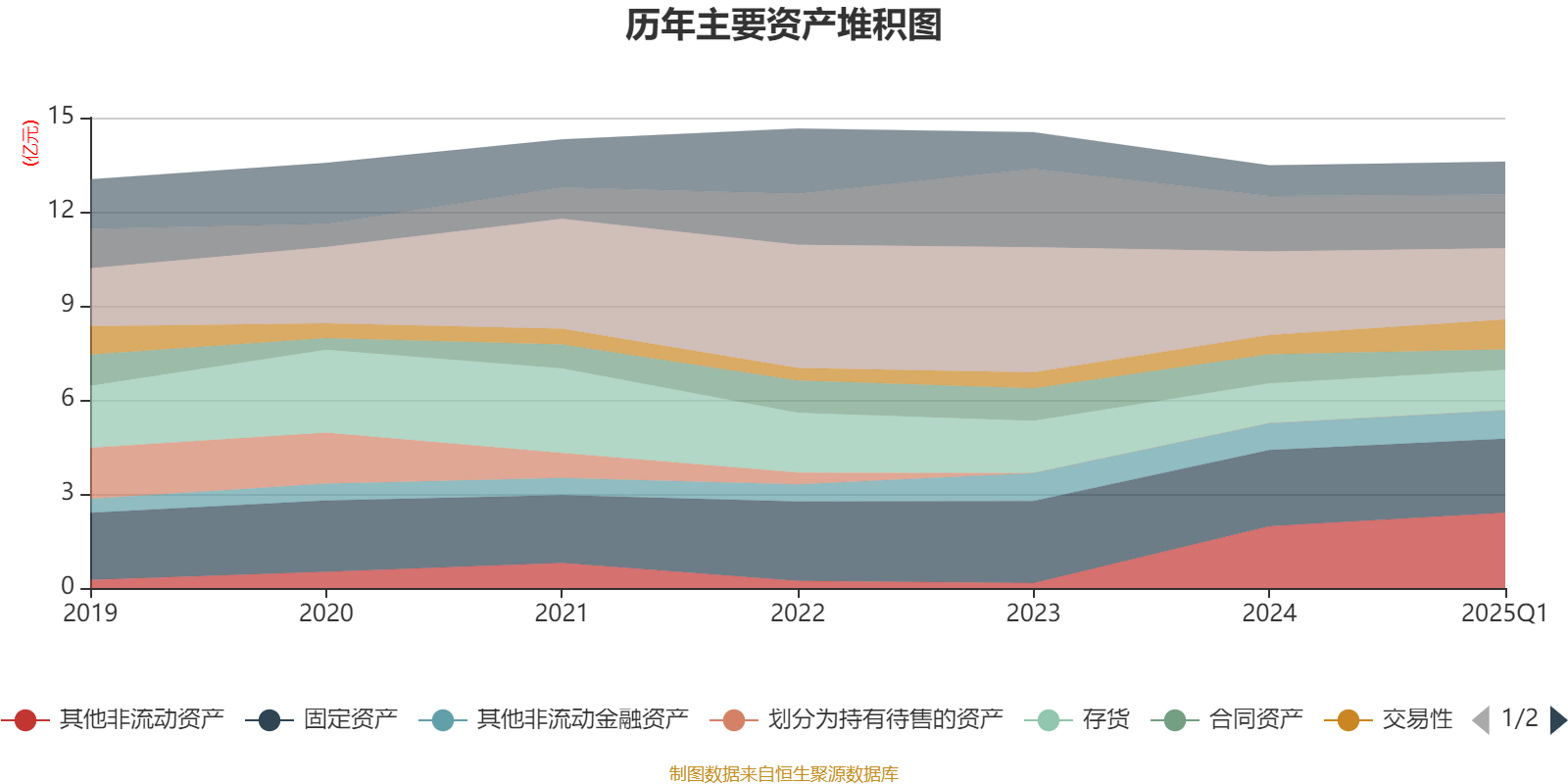 资产重大变化方面,截至2025年一季度末,公司应收票据及应收账款较上年末减少14.67%,占公司总资产比重下降3.06个百分点;其他非流动资产较上年末增加22.09%,占公司总资产比重上升3.06个百分点;交易性金融资产合计较上年末增加55.92%,占公司总资产比重上升2.48个百分点;合同资产较上年末减少29.95%,占公司总资产比重下降2.1个百分点。