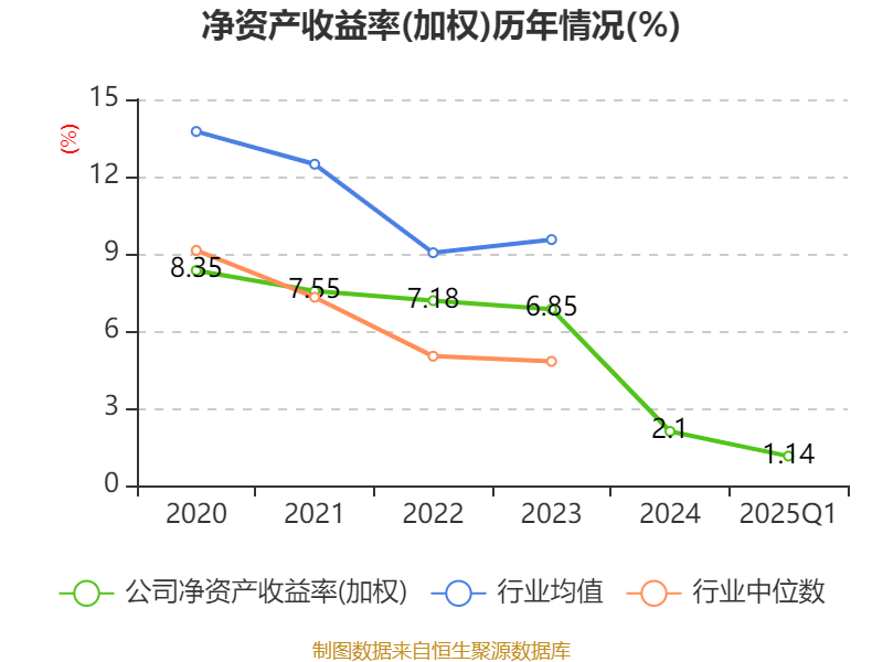 盈利能力方面, 2025年一季度公司加权平均净资产收益率为1.14%,同比上升0.16个百分点。公司2025年第一季度投入资本回报率为1.11%,较上年同期上升0.28个百分点。