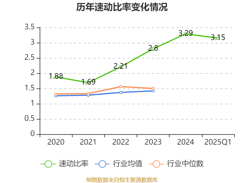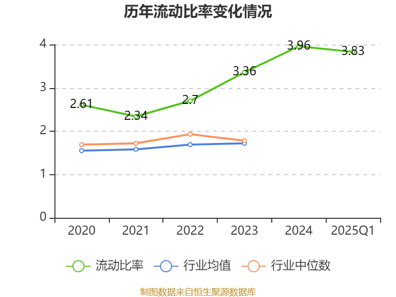 2025年第一季度,公司流动比率为3.83,速动比率为3.15。