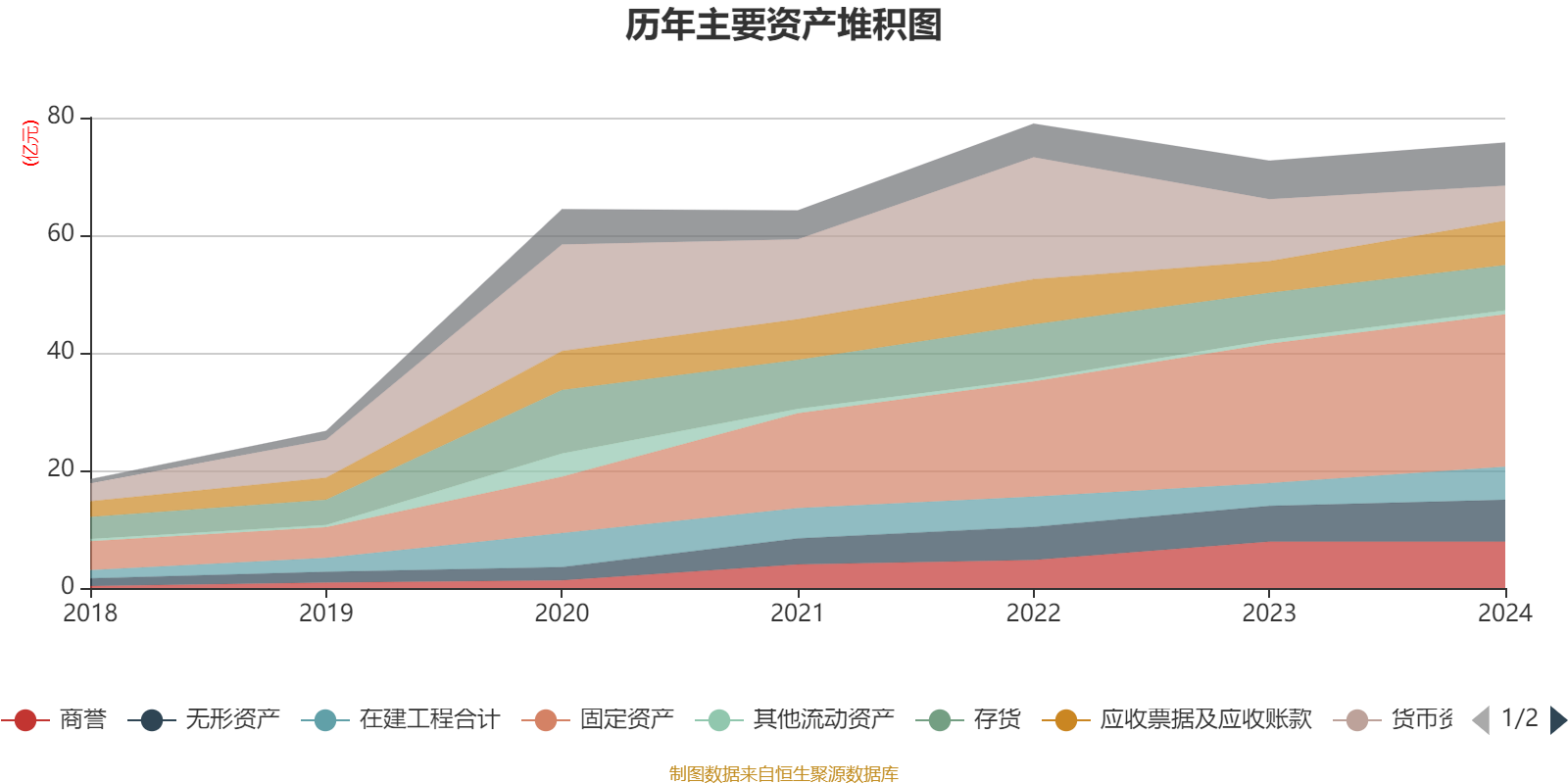 资产重大变化方面,截至2024年末,公司货币资金较上年末减少43.32%,占公司总资产比重下降6.61个百分点;应收票据及应收账款较上年末增加40.16%,占公司总资产比重上升2.56个百分点;在建工程合计较上年末增加44.79%,占公司总资产比重上升2.08个百分点;固定资产较上年末增加9.29%,占公司总资产比重上升1.57个百分点。