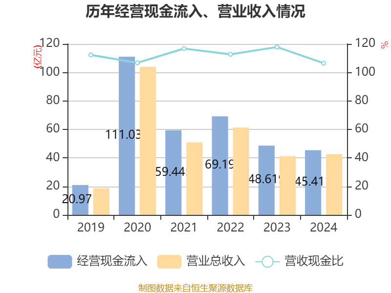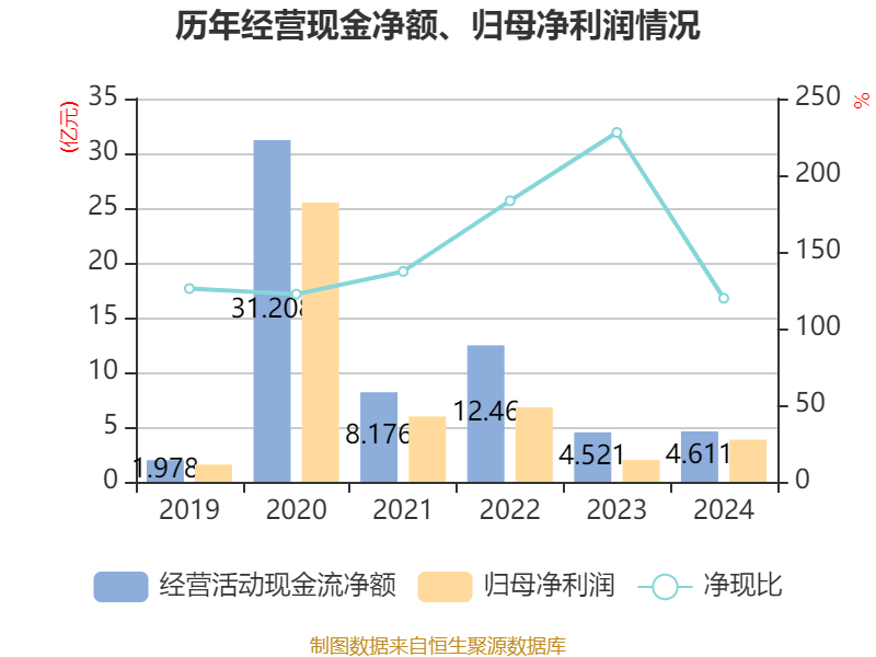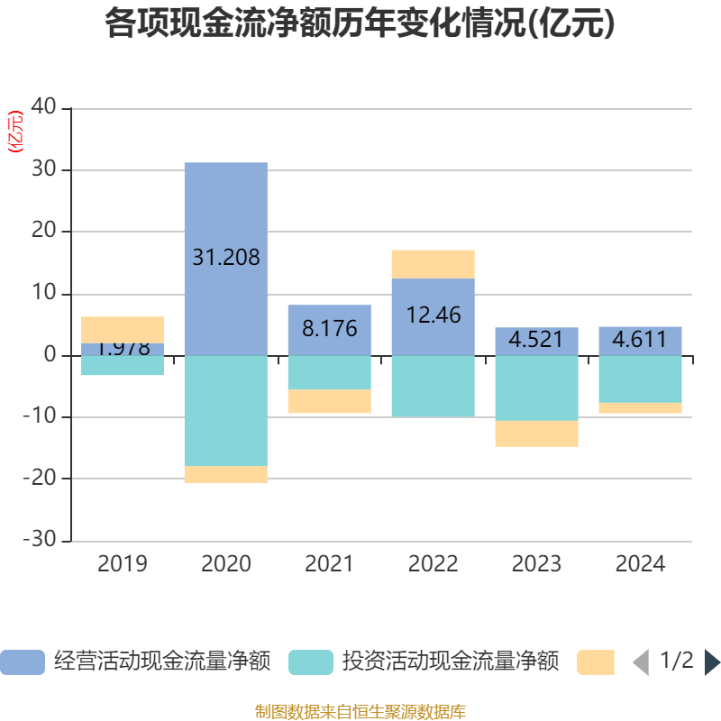 截至2024年,公司经营活动现金流净额为4.61亿元,同比增长2%;筹资活动现金流净额-1.69亿元,同比增加2.54亿元;投资活动现金流净额-7.68亿元,上年同期为-10.58亿元。
