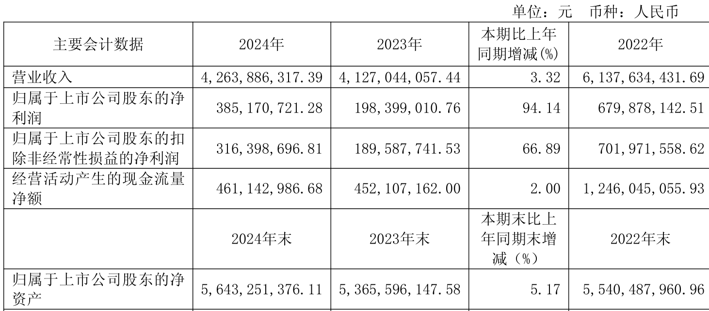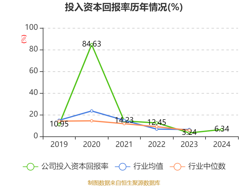 数据显示,2024年公司加权平均净资产收益率为7%,较上年同期上升3.4个百分点。公司2024年投入资本回报率为6.34%,较上年同期上升3.1个百分点。