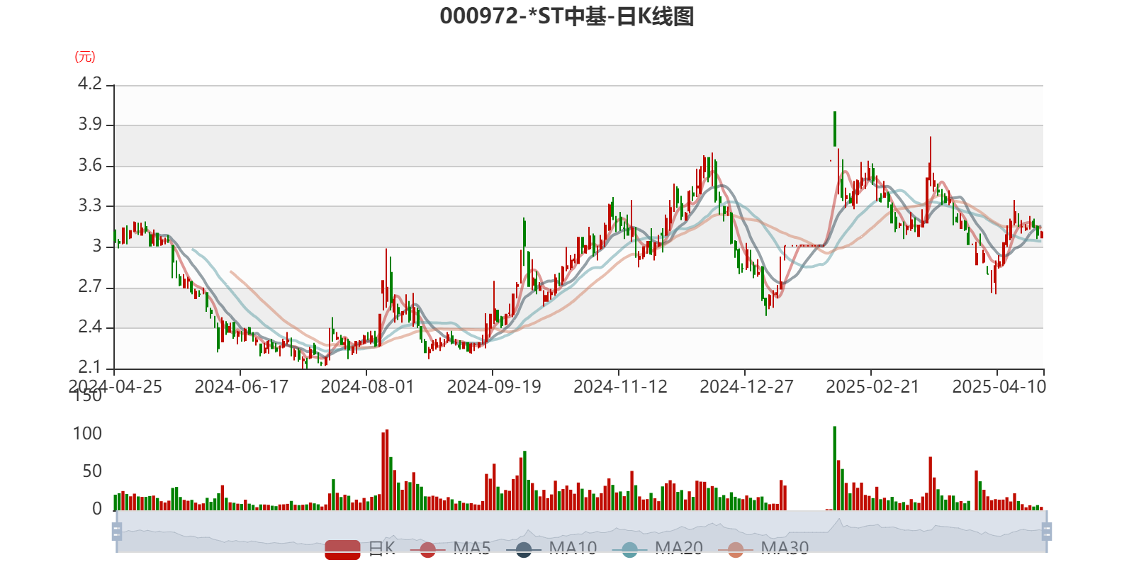 以4月24日收盘价计算,*ST中基目前市盈率(TTM)约为-9.77倍,市净率(LF)约-68.83倍,市销率(TTM)约8.91倍。