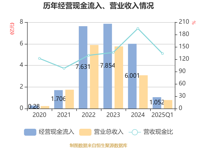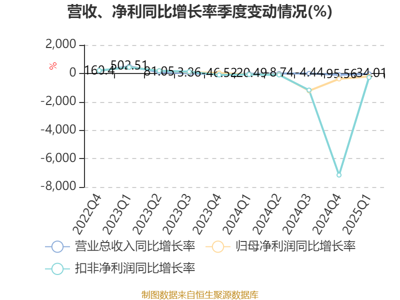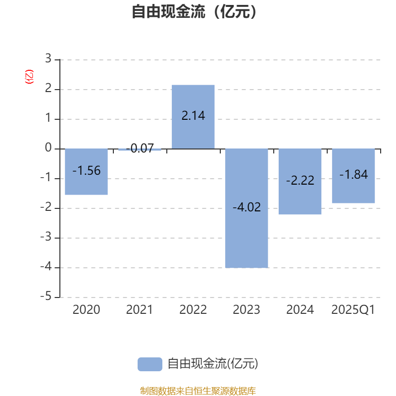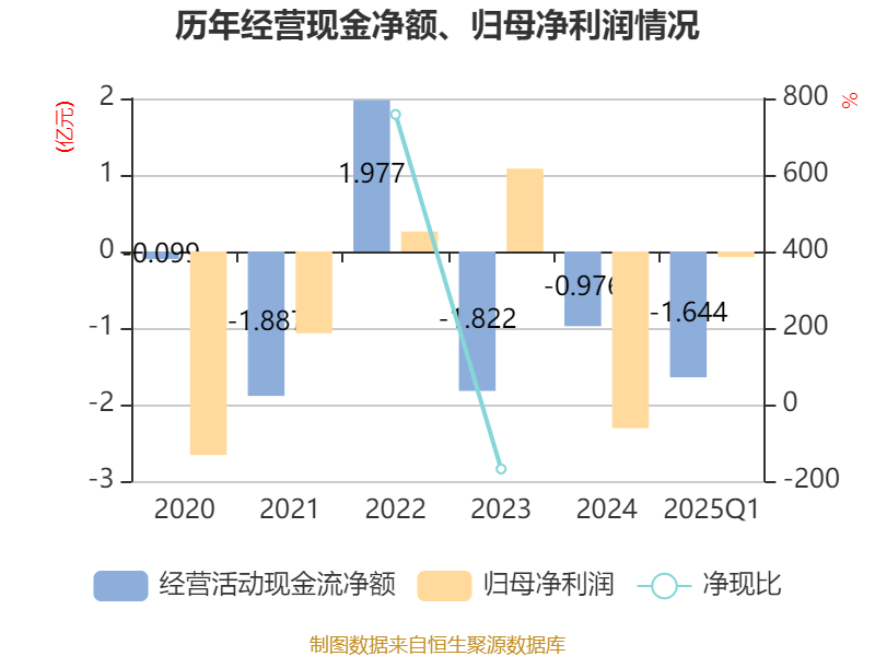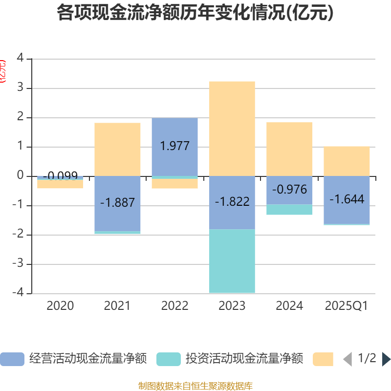 截至2025年一季度末,公司经营活动现金流净额为-1.64亿元,同比减少1.79亿元;筹资活动现金流净额1.01亿元,同比增加1.75亿元;投资活动现金流净额-313.52万元,上年同期为-1033.49万元。